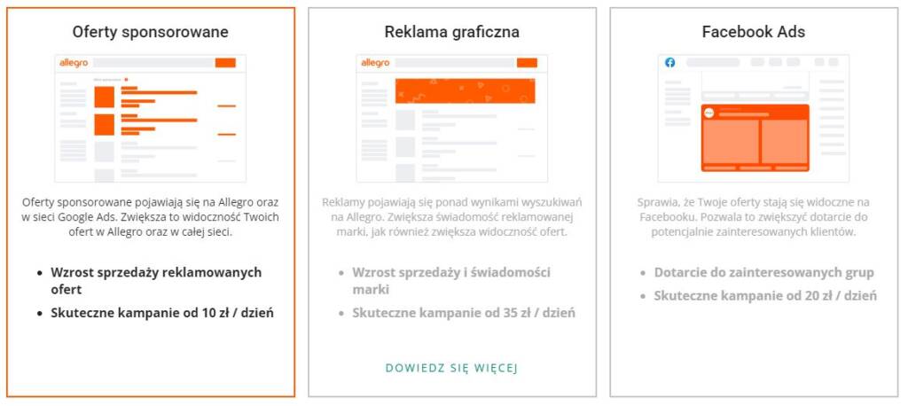 Jest to system reklamowy Allegro, umożliwiający tworzenie kampanii w platformie Allegro, ale też poza nią. Produkty w ramach Allegro Ads są lepiej widoczne i mogą generować duży zysk.