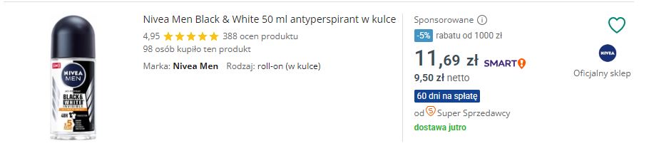 Oferty sponsorowane to po prostu Twoje aukcje, które za odpowiednią opłatą, możesz pokazać m. in. na górze strony wyszukiwania Allegro. Takie listingi opisane są jako „Sponsorowane”. Obok tego, często pojawiają się oferty z podpisem „Promowane” – to jednak dotyczy produktów wyróżnionych, co nie jest ściśle powiązane w Allegro Adsami. Aukcje sponsorowane są niezwykle popularne wśród sprzedawców, głównie dlatego, że w tym przypadku płaci się jedynie za kliknięcie, którego CPC zaczyna się od 10 groszy. Co więcej – możesz ustalić budżet dzienny oraz określić maksymalną stawkę za kliknięcie. Oferty sponsorowane Allegro Ads wyświetla w wynikach wyszukiwania Allegro, w kolumnie po lewej stronie wyszukiwania, a także na stronie oferty.