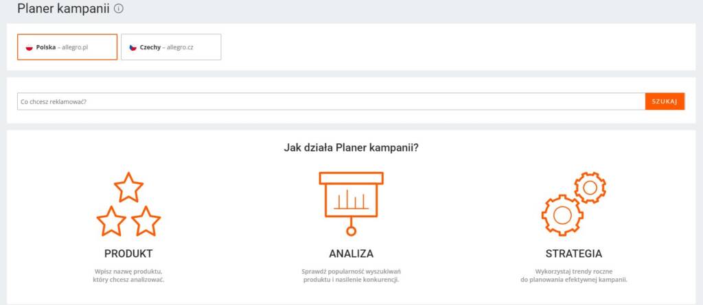 4. Analiza słów kluczowych: W celu optymalizacji aukcji oraz wykreowaniu perfekcyjnej reklamy w Allegro Ads, należy dobrać odpowiednie słowa kluczowe. Na szczęście polska platforma sprzedażowa udostępnia narzędzie o nazwie Planer kampanii, z pomocą którego możesz przeanalizować moc wyszukiwania interesujących Cię fraz.